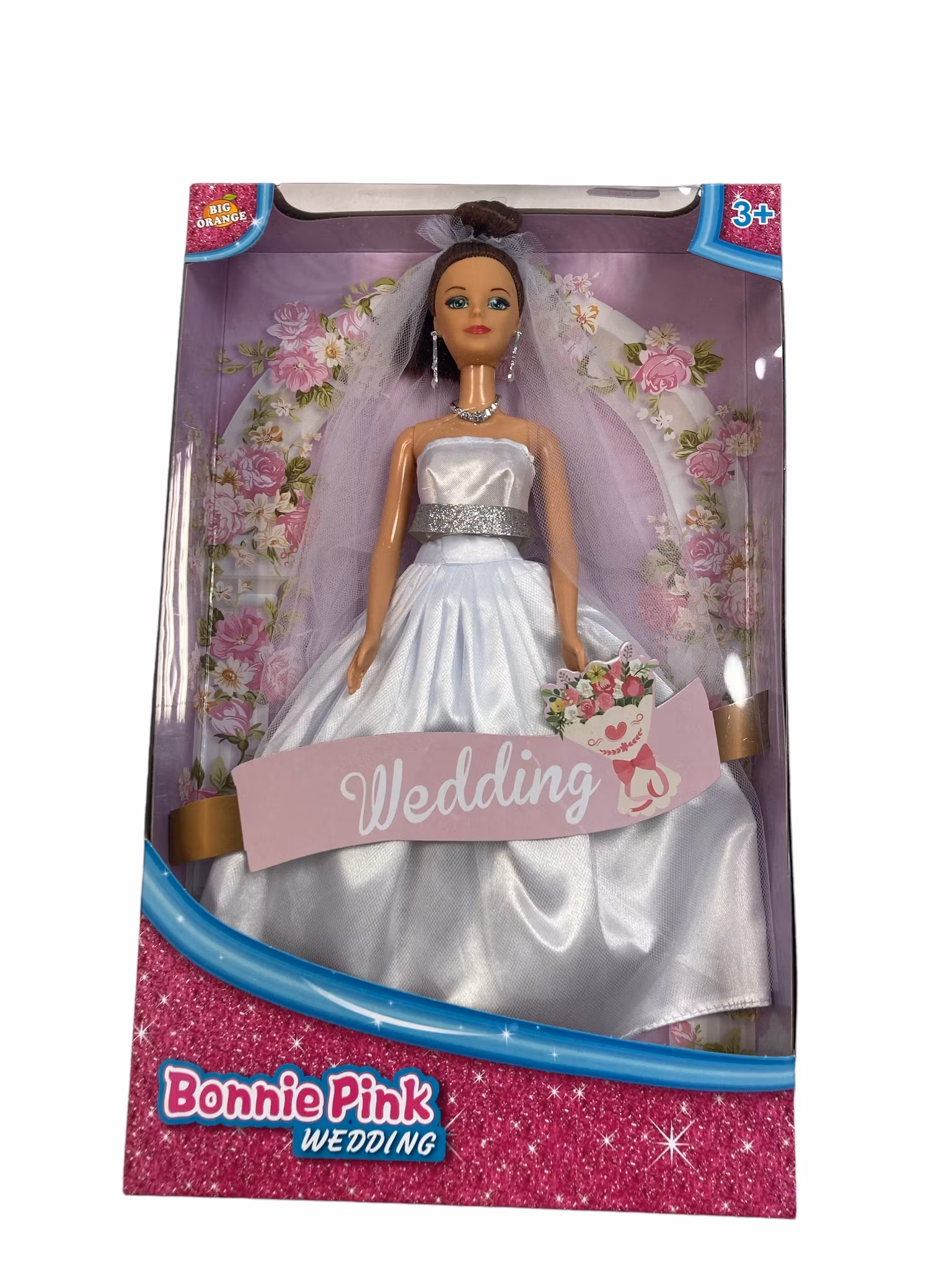 Barbie-liknande docka med brudklänning. Den finns i två varianter; mörkhårig med vit klänning och ljushårig med rosa klänning. Lämplig för barn över 3 år.