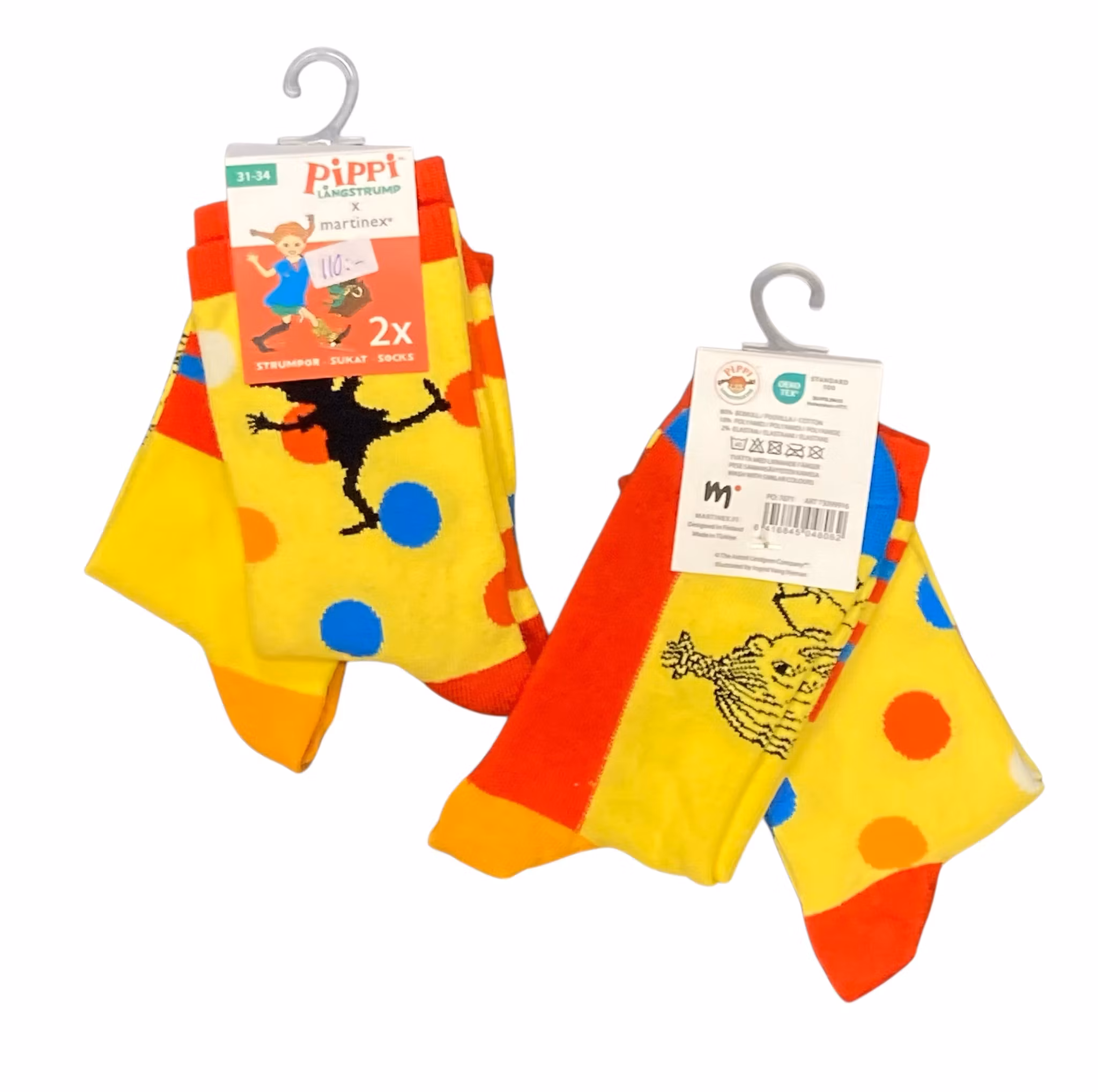 2-pack strumpor Pippi stl 31/34 110 kr 70 kr 2 par gula strumpor me Pippi Långstrump. I lager. Lägg i korgen Dela Lagersaldo: 3 Artikelnummer: 13619 Information 2 par gula strumpor me Pippi Långstrump.