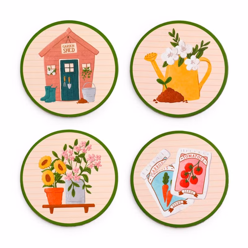 Underlägg trädgård 75 kr 4-pack underlägg i kork med trädgårdsmotiv. Ø ca 10cm I lager. Lägg i korgen Dela Lagersaldo: 4 Artikelnummer: 13736 Information 4-pack underlägg i kork med trädgårdsmotiv. Ø ca 10cm