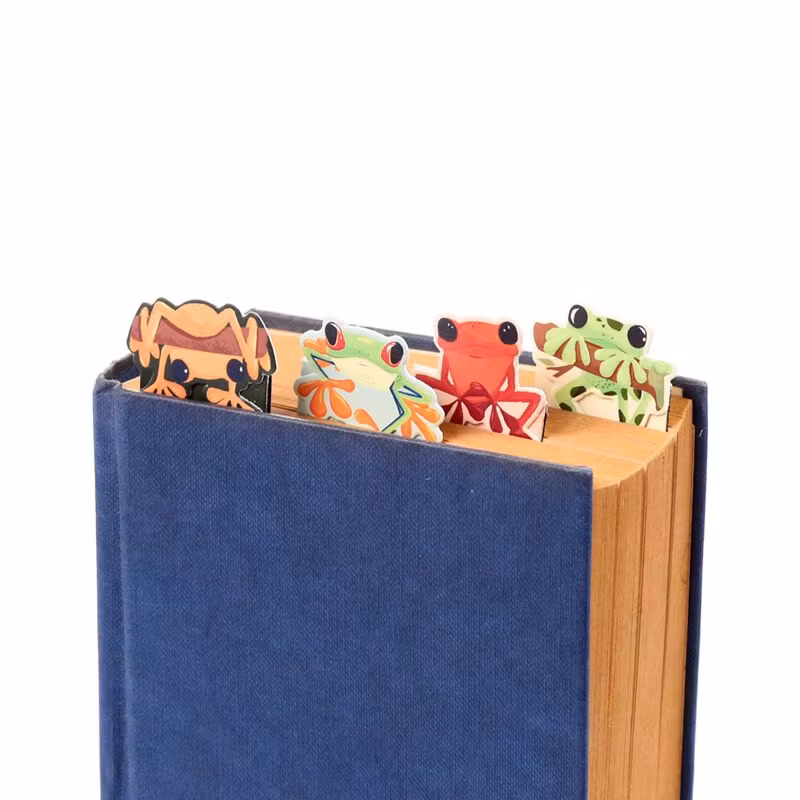 Bokmärken grodor 30 kr 4 stycken magnetiska bokmärken med grodor. I lager. Lägg i korgen Dela Lagersaldo: 24 Artikelnummer: 13725 Information 4 stycken magnetiska bokmärken med grodor.