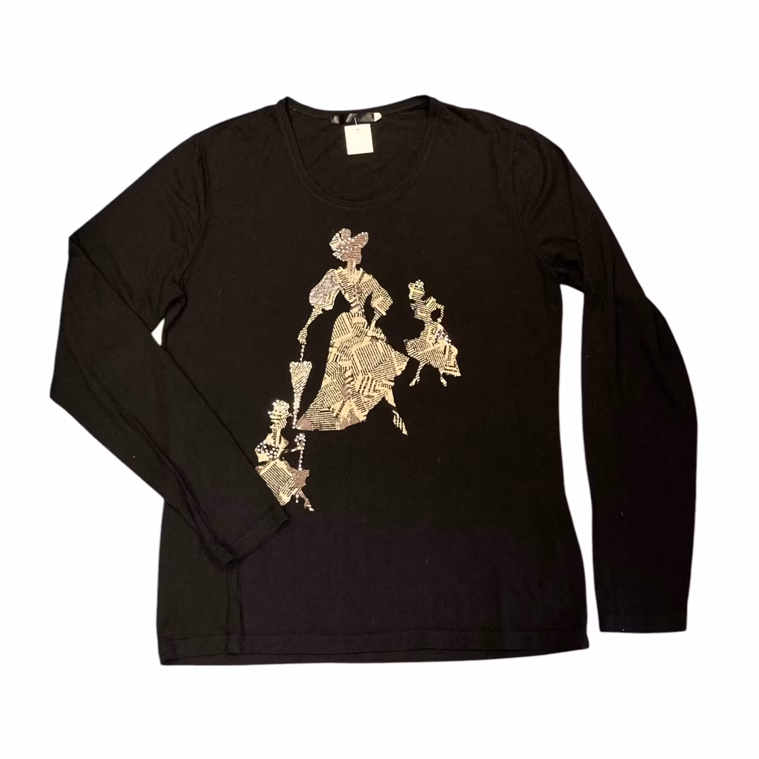 Svart tröja stl L 50 kr Svart långärmad tunn tröja med beige mönster fram dekorerat med silverstenar. Mycket fint skick. Stl L, ZORBÉ94% viskos 6% elastan. Tvätt 30 grader I lager. Lägg i korgen Dela Lagersaldo: 1 Artikelnummer: 11883 Information Svart långärmad tunn tröja med beige mönster fram dekorerat med silverstenar. Mycket fint skick. Stl L, ZORBÉ94% viskos 6% elastan. Tvätt 30 grader